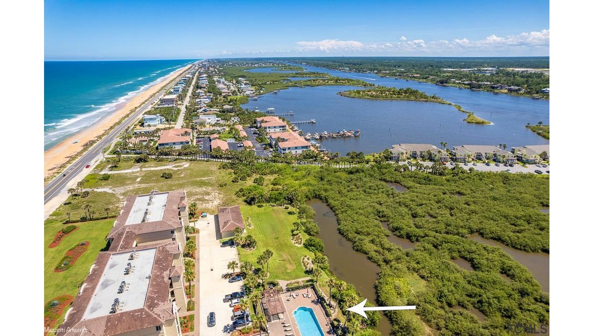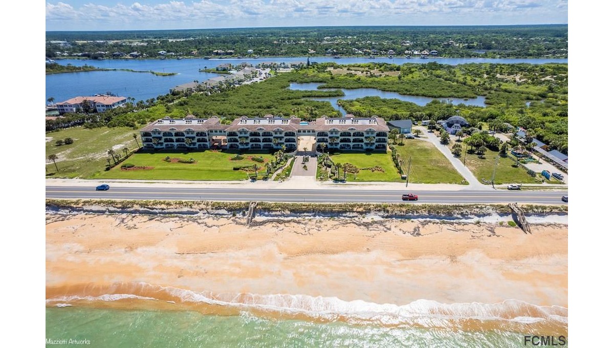 AMAZING OCEAN VIEWS! Wake up at the beach to a Beautiful new sunrise every morning and Gorgeous Sunsets over the Intracoastal Waterway in the evenings. Spacious 3 bedroom 3 full bath unit on first floor at Oceanside at Beverly Beach. Only steps away from the Atlantic Ocean. This luxury condominium community backs up to Silver Creek with a kayak launch on site. The unit boasts custom cabinets, S.S. appliances, and luxurious granite counters in the kitchen and baths, A full home high quality water softener system is included. A/C unit was installed in 2017 and the Water Heater in 2019. Large Master Bedroom with a dual vanity bathroom, jetted tub and separate shower. Laundry room is in the unit with a utility sink and lots of extra storage. Gated secured entrance. Elevator. One reserved underground parking space, heated Pool, one Storage locker for your beach gear and Deeded beach access. This community allows pets w/ no weight limits and includes a Pet friendly beach. Call me Today!